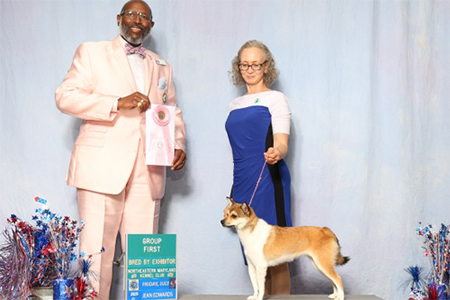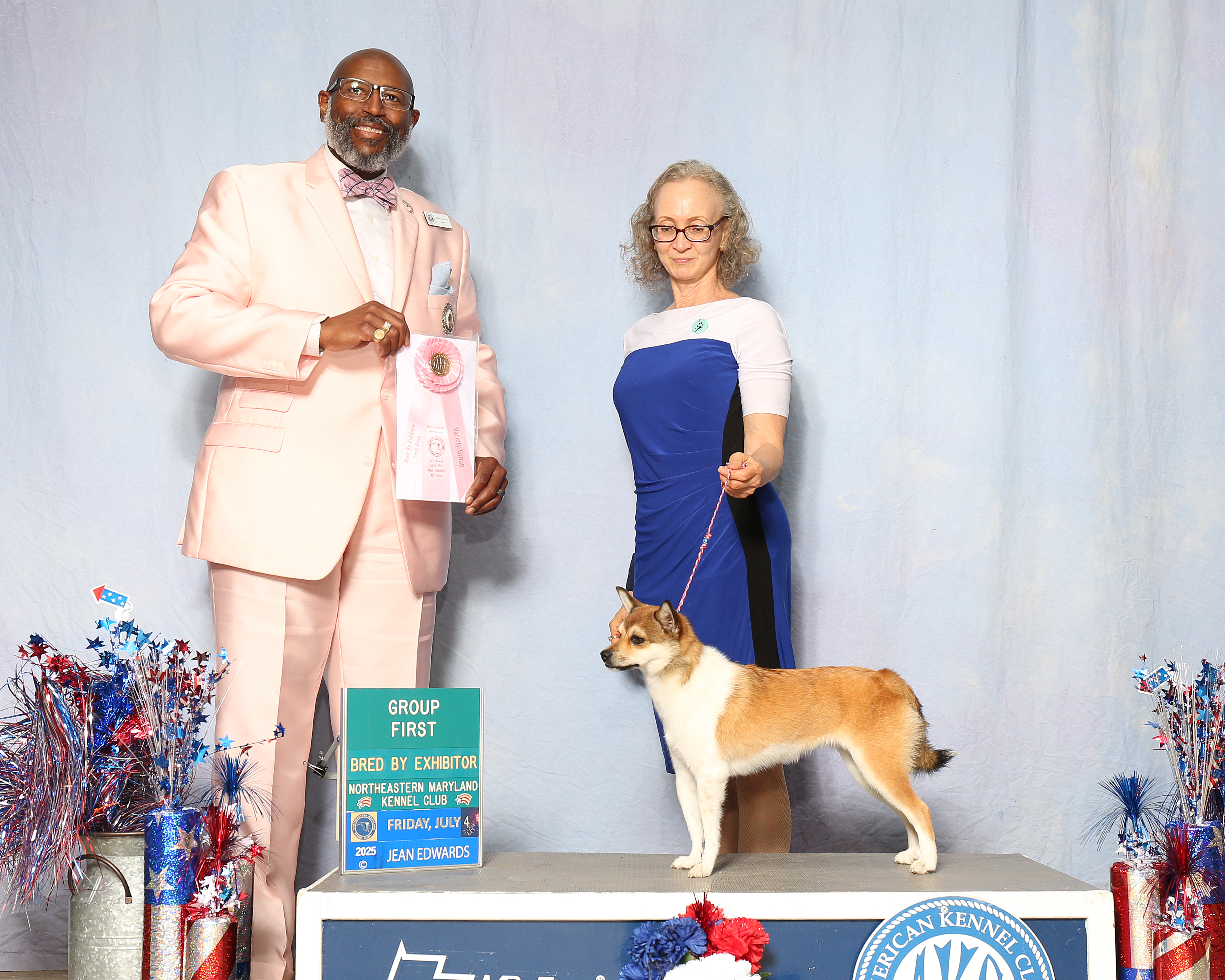 Haldis wins 1st place for Non-Sporting Bred-by-Exhibitor with Judge Jackson.